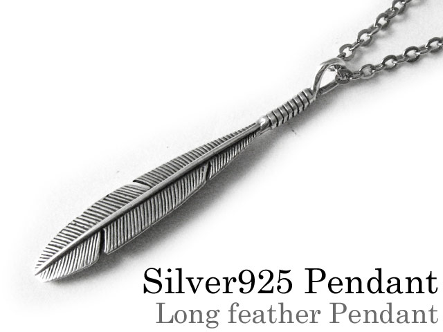細長いフェザーは胸元にスッキリとした印象を与えるロングフェザーペンダント|シルバーアクセサリー≪2mmアズキチェーン割引セット≫【楽ギフ_包装選択】
